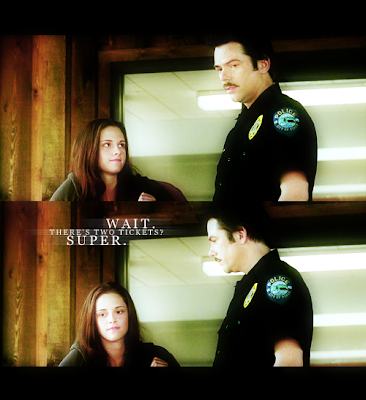 Našla jsem pro vás další blbůstku, ale roztomilou. Něco jako banner s Charliem a Bellou, nevím co, ale strašně se mě na tom něco líbí. Myslím že na banneru je napsáno: "Počkej, dvě letenky (lístky), super!". Odhaduju že je to ze scény: Bella říká Charliemu že k Renné pojede s Edwardem.